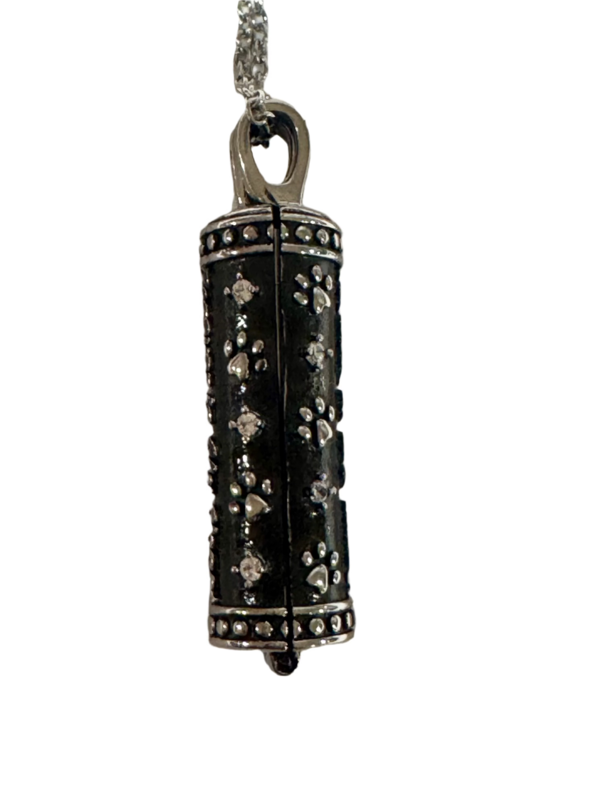 Pet Black Cylinder Jewel Paws Locket Ashes Necklace